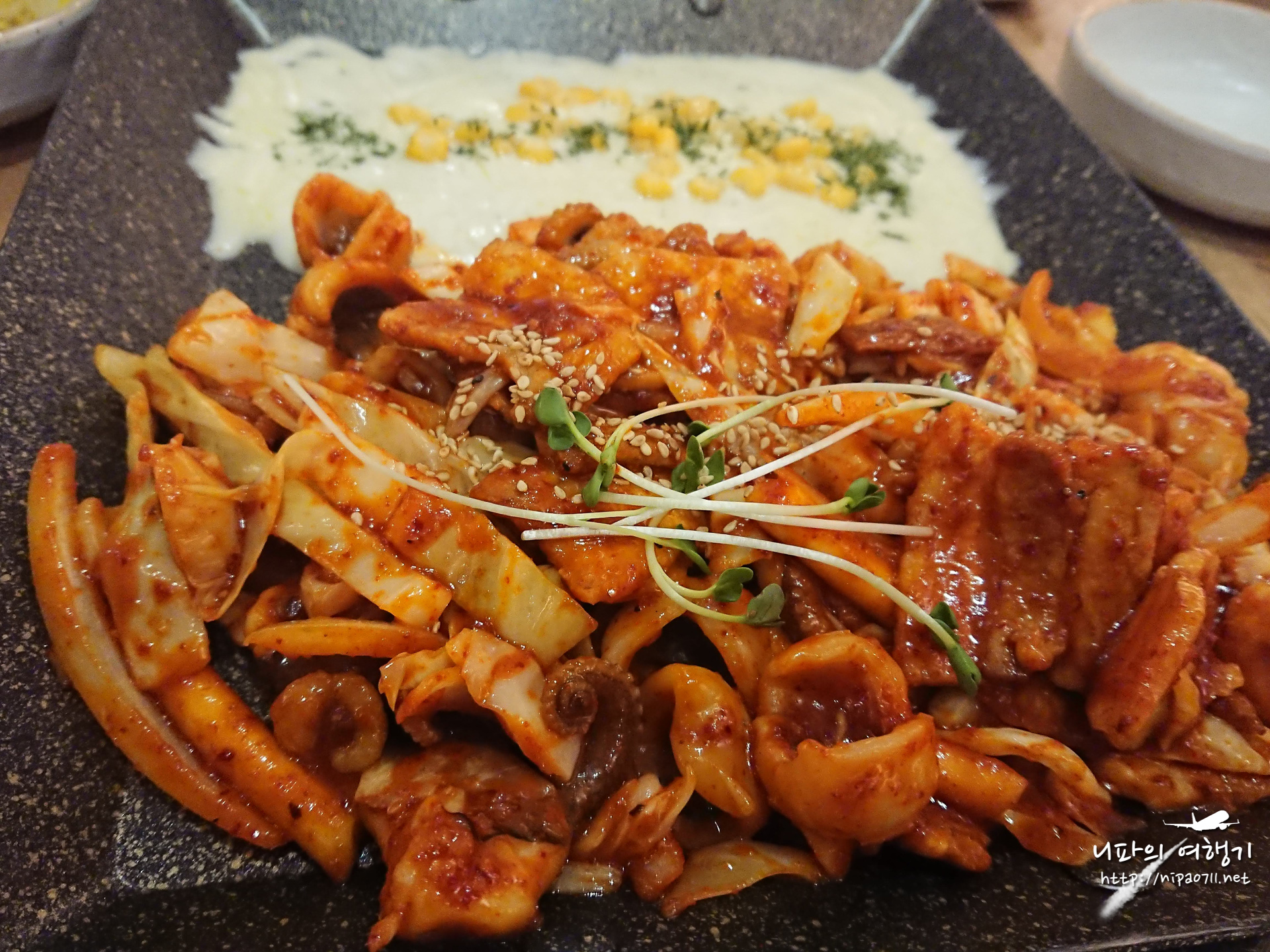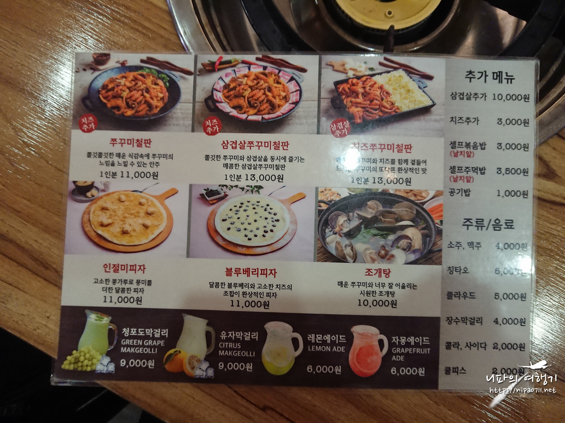 삼겹살쭈꾸미철판 2인분에 치즈를 추가했습니다.