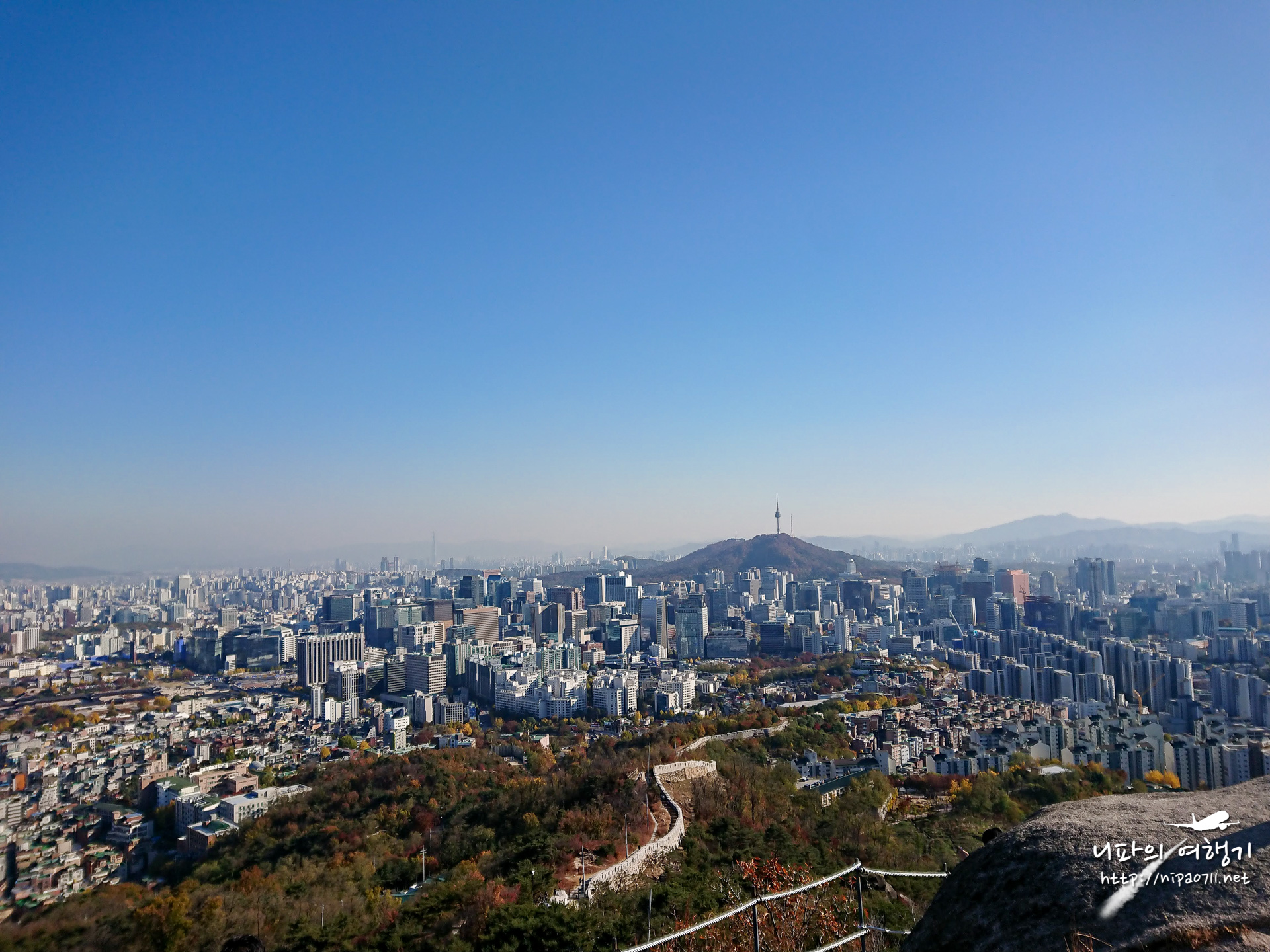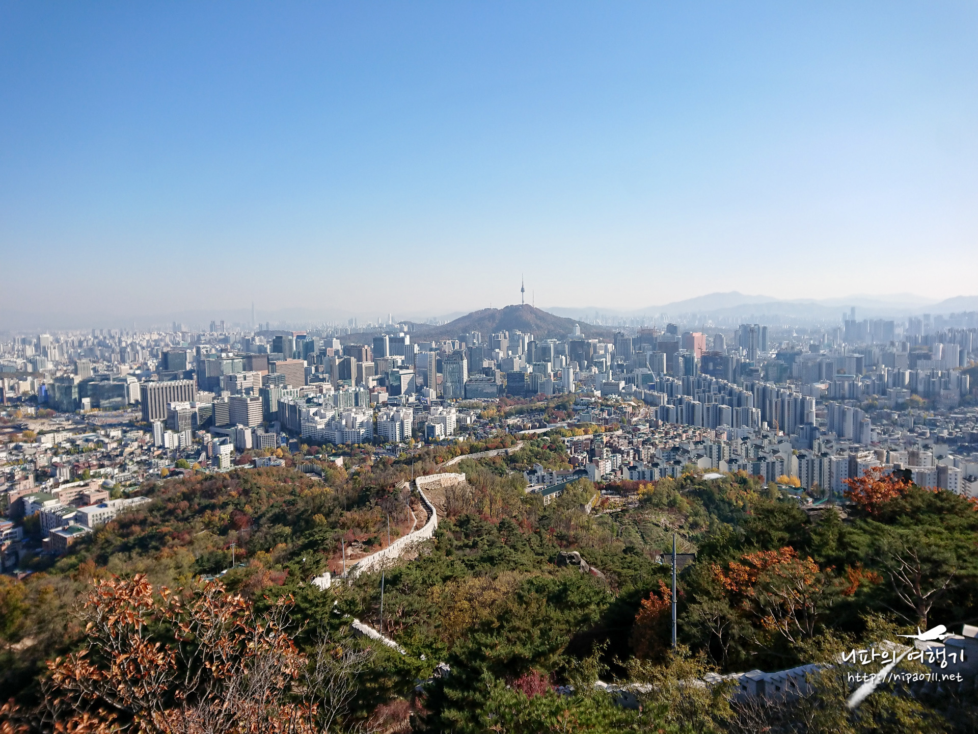 올라가는 도중 종종 뒤 돌아서서 서울 도심을 바라봅니다.