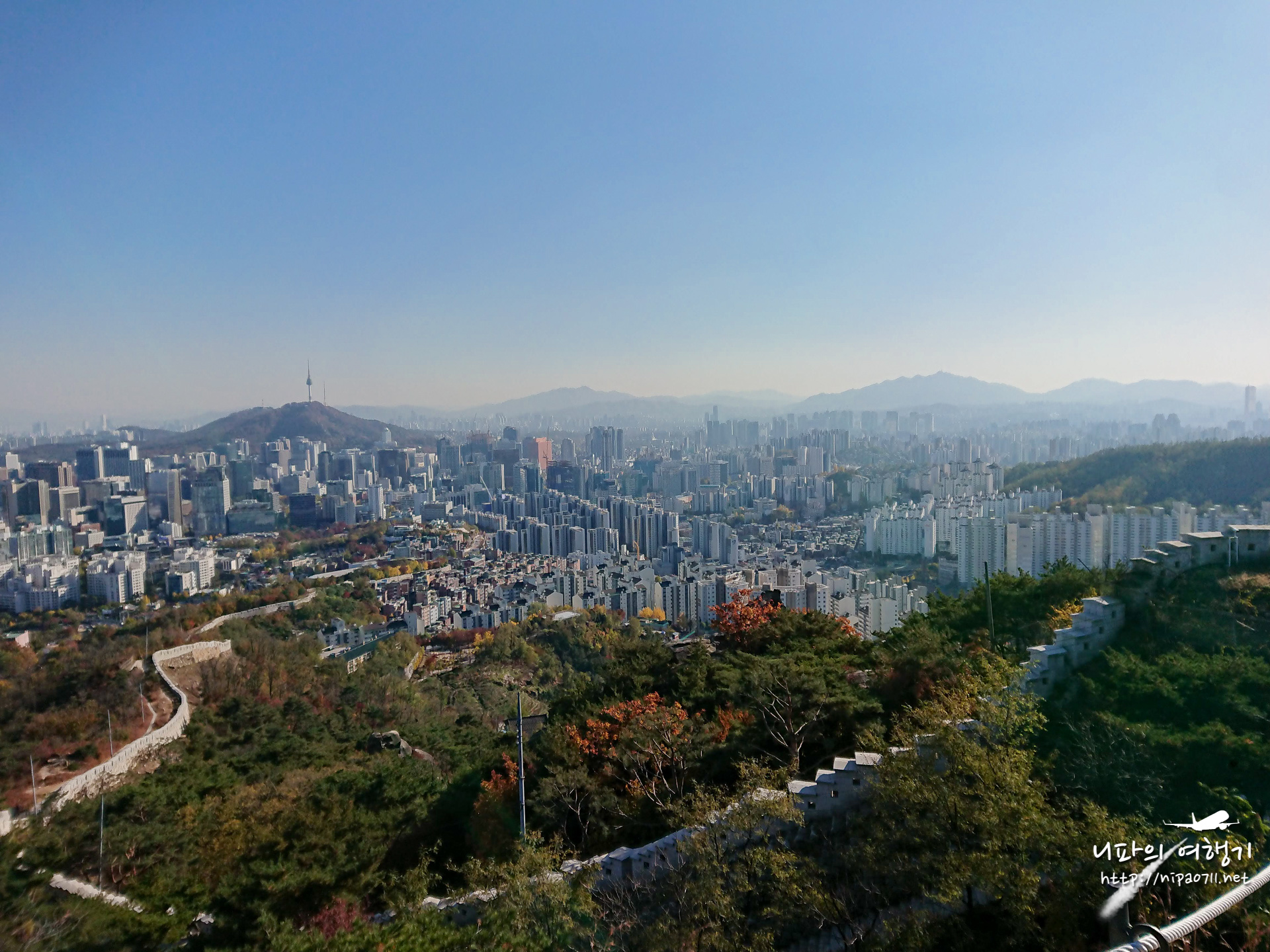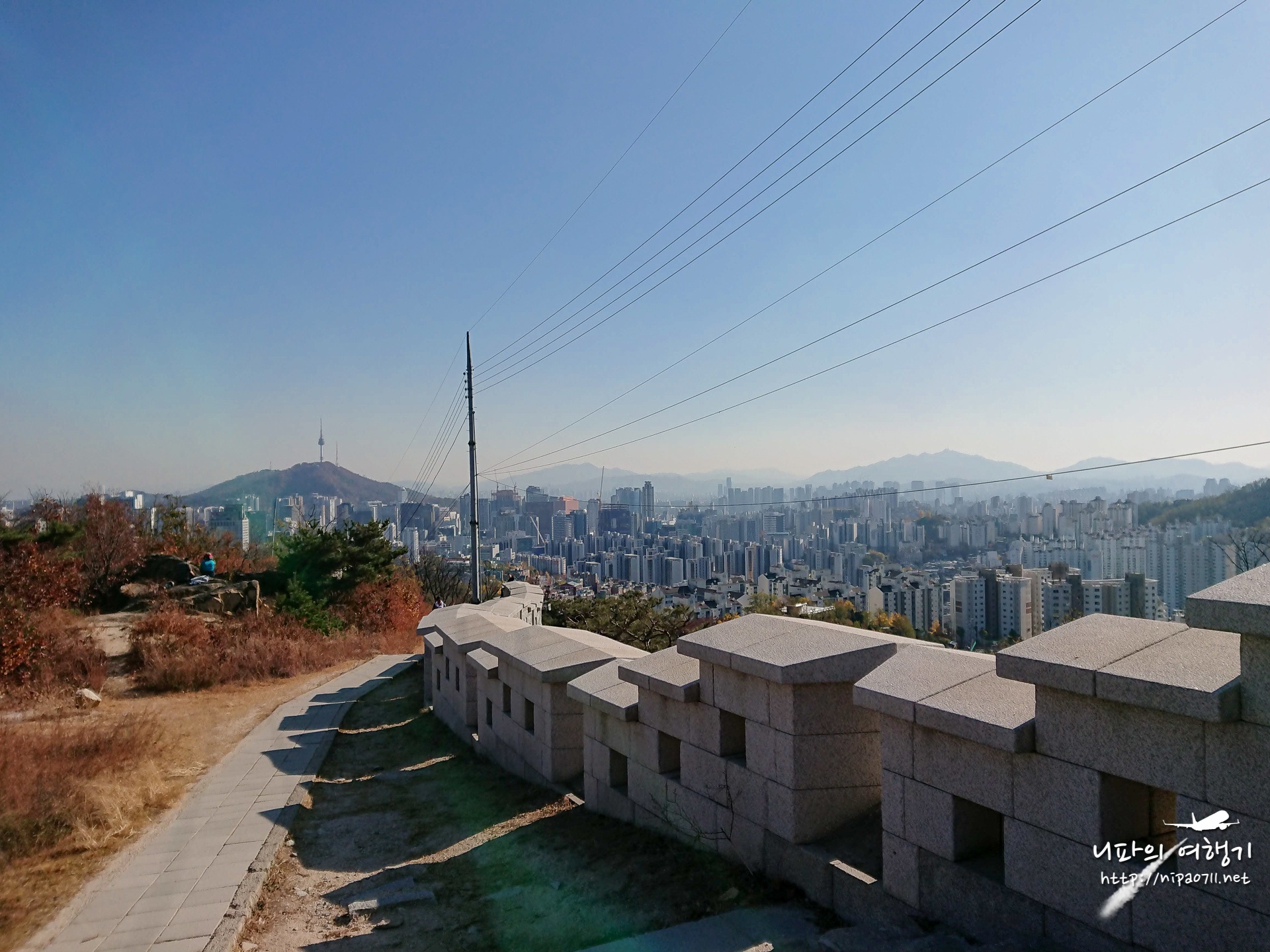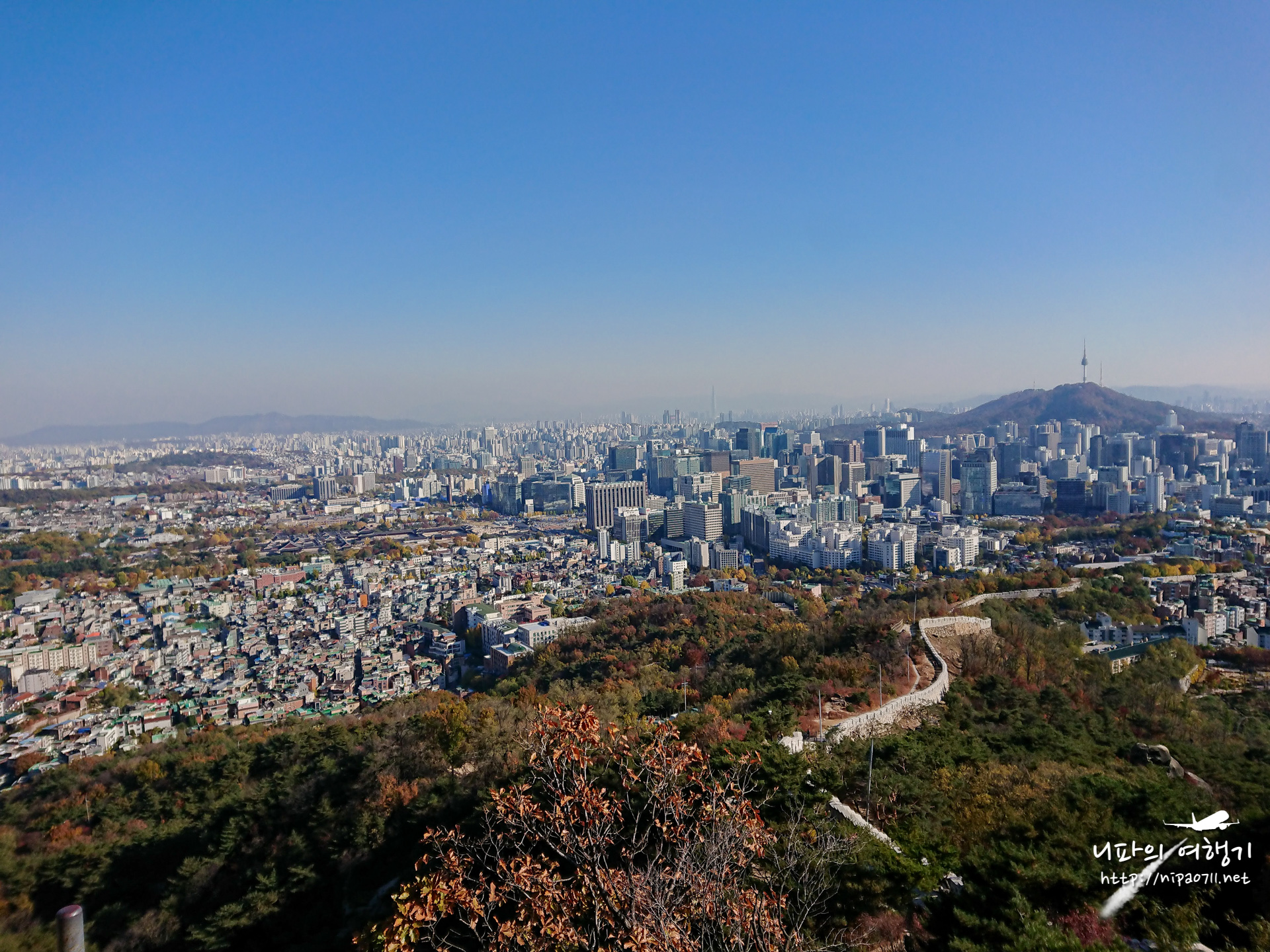 올라가는 도중 종종 뒤 돌아서서 서울 도심을 바라봅니다.