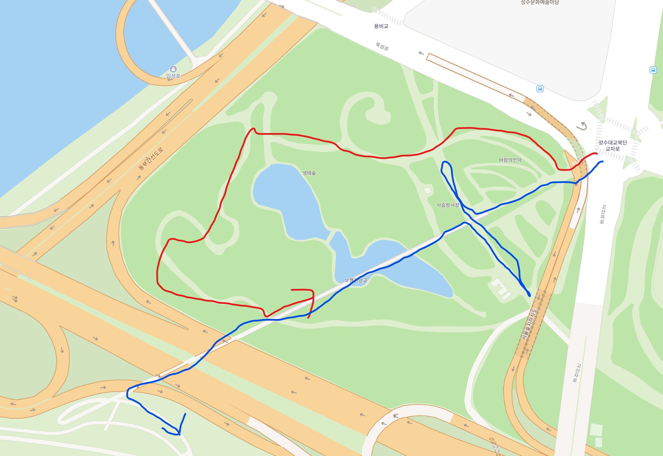이런식으로 갔다가 곤충식물원쪽으로 빠져나와서 집으로 돌아가는 루트를 잡고 움직였습니다.