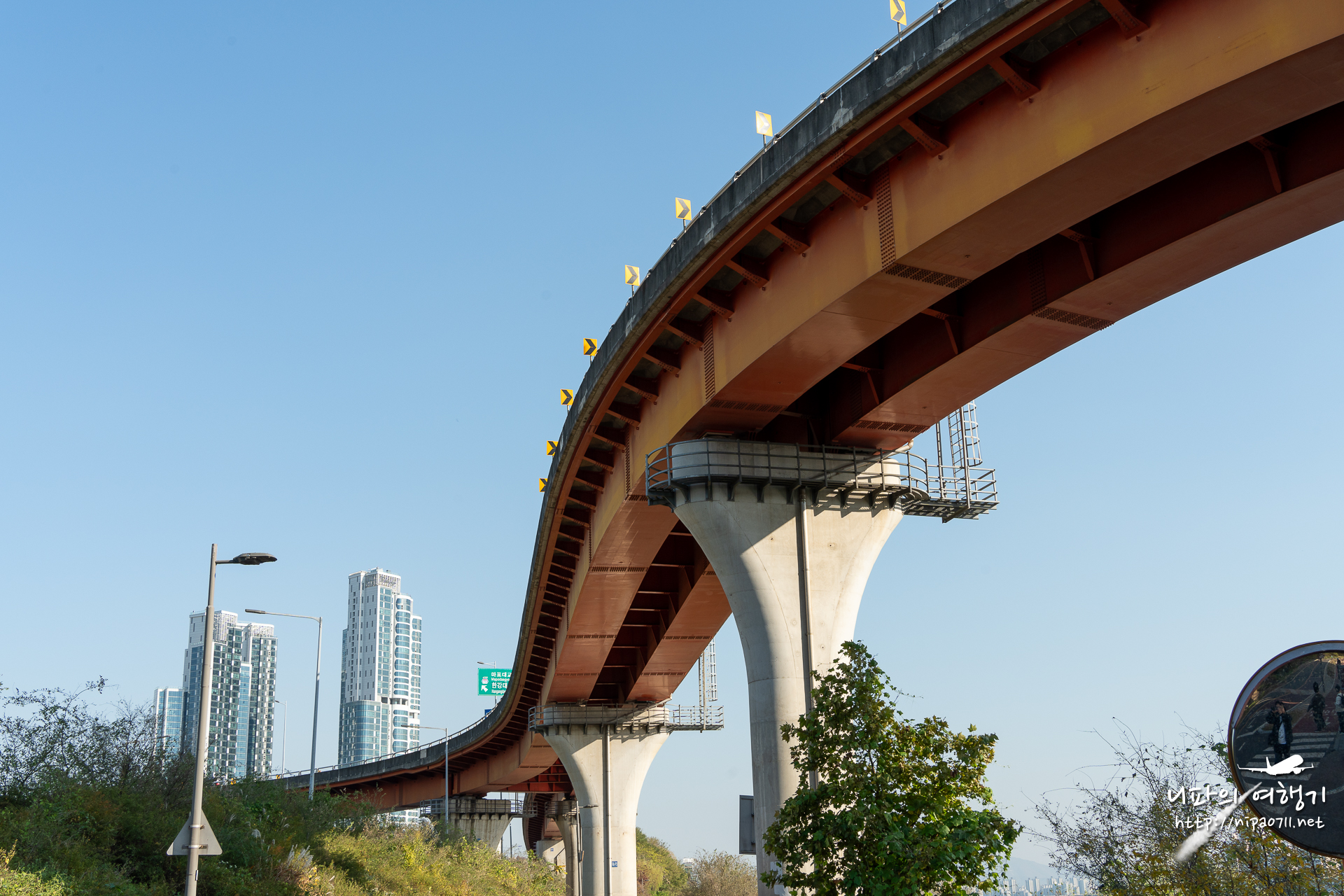 계획은 빨간색 처럼 한바퀴 돌아서, 저 보행전망교로 나오는 거였는데 (연결 안 되어 있으면 한바퀴 도는거고..)
