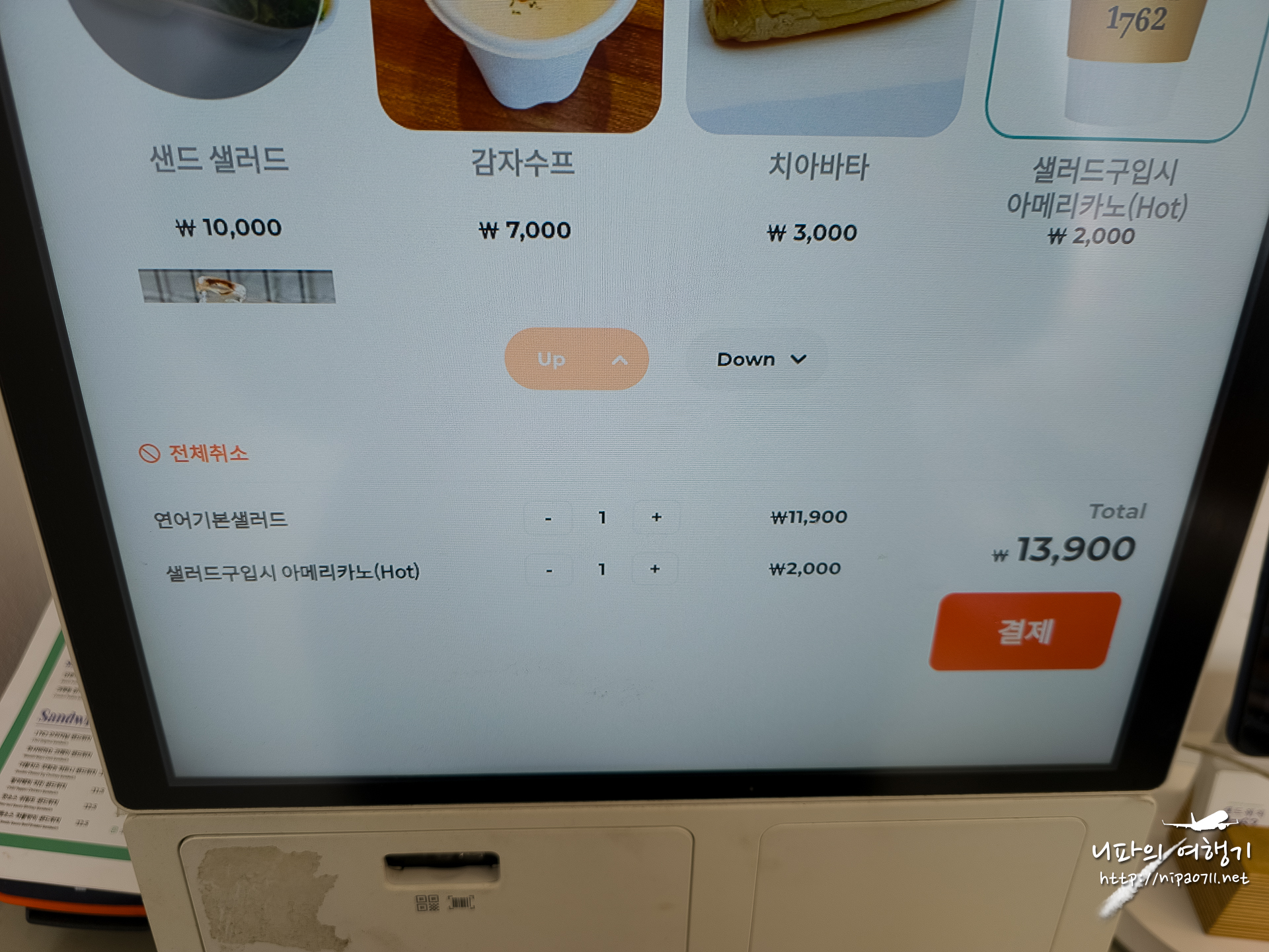 처음 가보는 곳이였는데, 연어기본샐러드 11,900원에, 샐러드 구입시 할인되는 아메리카노 2천원을 추가로 해봤습니다.