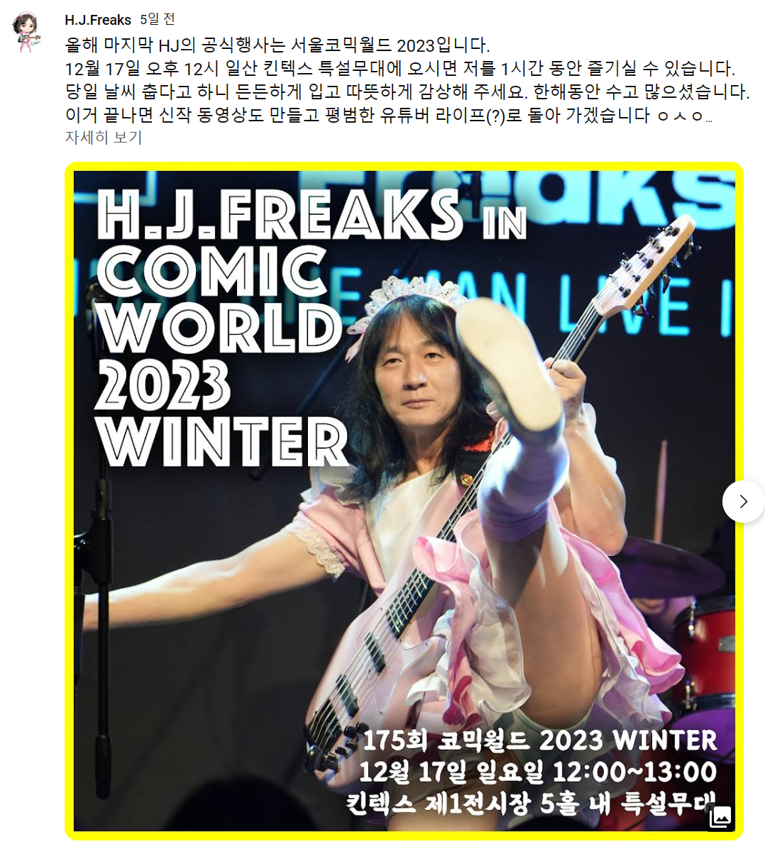 일요일은 H.J.Freaks의 공연을 제대로 즐기는게, 저만의 코믹월드 2023 WINTER 의 목표였습니다.