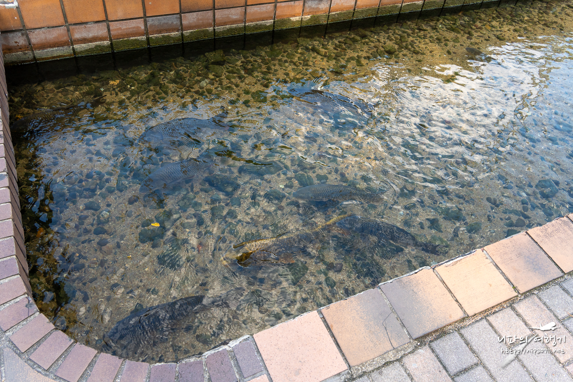 가는 길에 보이는 자그마한 물길에는 붕어들이 있습니다.
