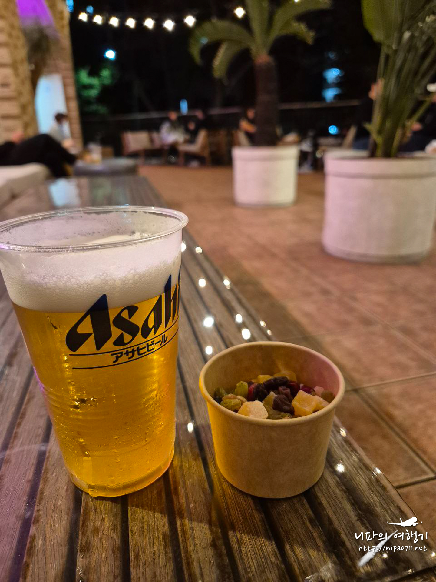 장점 : 생맥주가 무료, 웰컴 드링크라 쓰고 맥주도 무료. 수건은 로비에서 가져다 쓸 수 있다고 합니다.