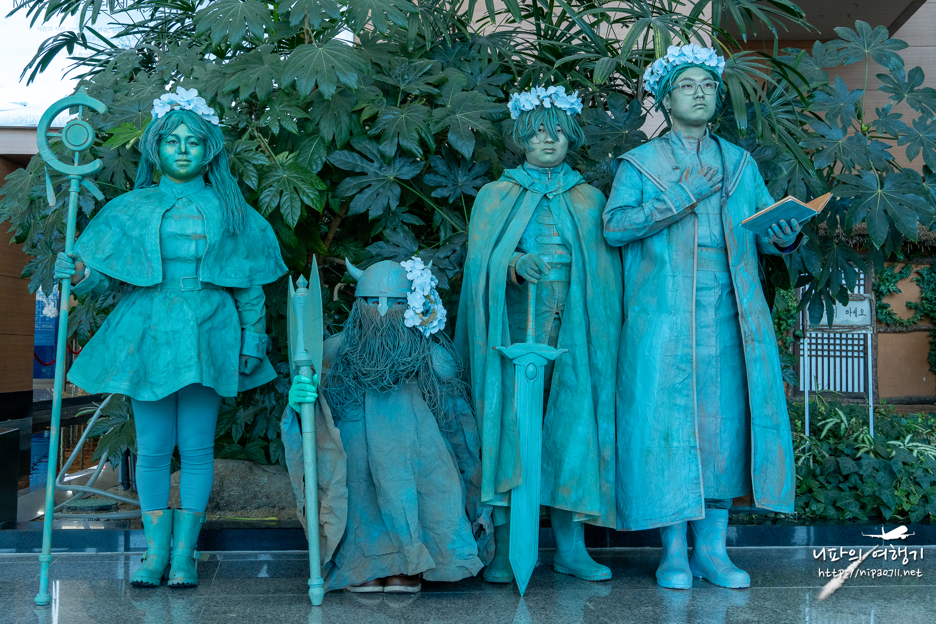 이 분들은 원래 좌측편에 있었는데, 뒤쪽 나무 배경이 좋을 것 같아서, 옮겨달라고 부탁했지 말입니다.