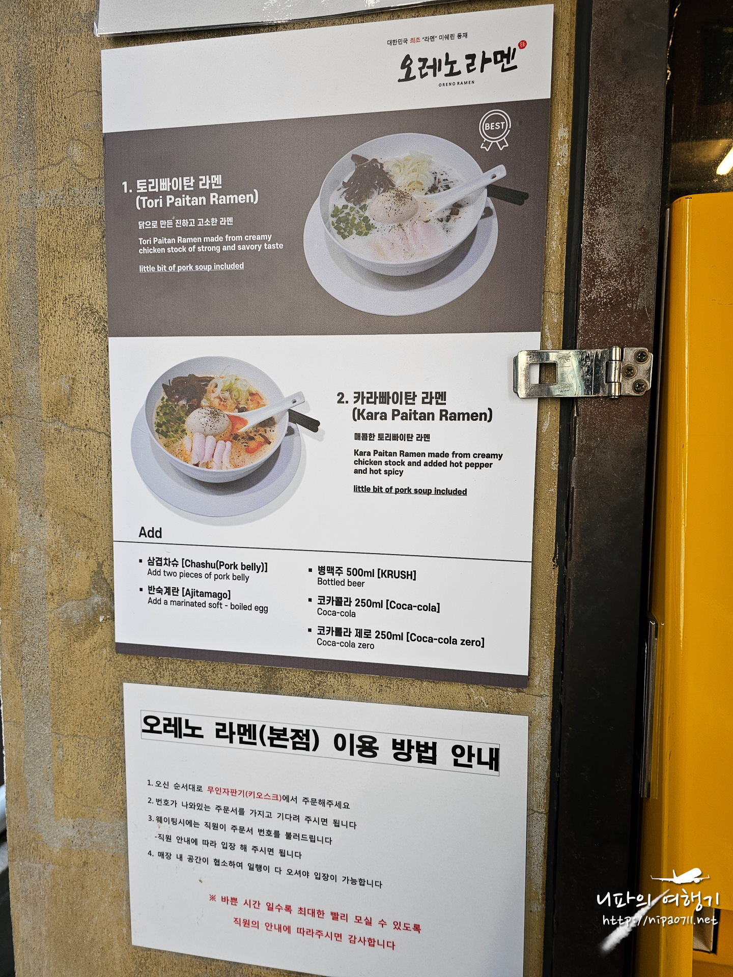 홍대역에서 합정역으로 넘어간 김에, 오레노라멘이라는 곳을 방문해봤습니다.