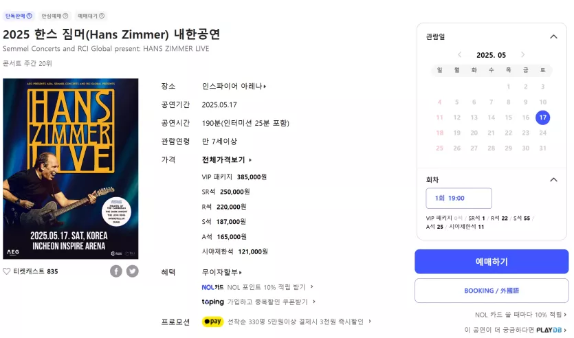 2025년 5월 17일, 인천 인스파이어 아레나에서 진행한 한스짐머 내한공연을 갔다 왔습니다.