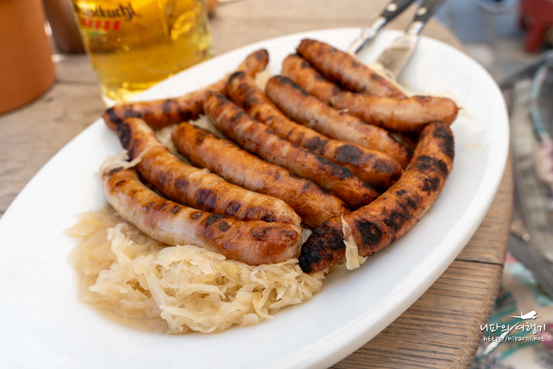 다리옆에 있는 오래된 소세지 집에서 점심을 먹었습니다.