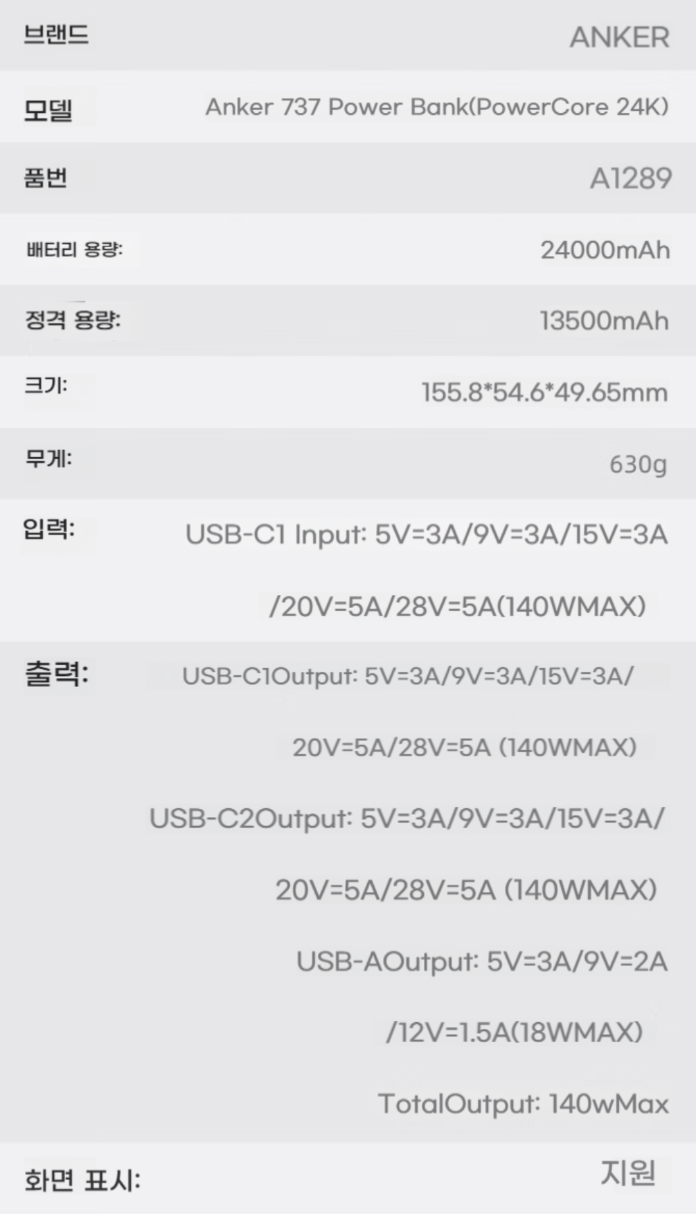 Anker 737 파워뱅크 24k 입니다. (용량이 24000 입니다. 기내 반입 가능합니다.)