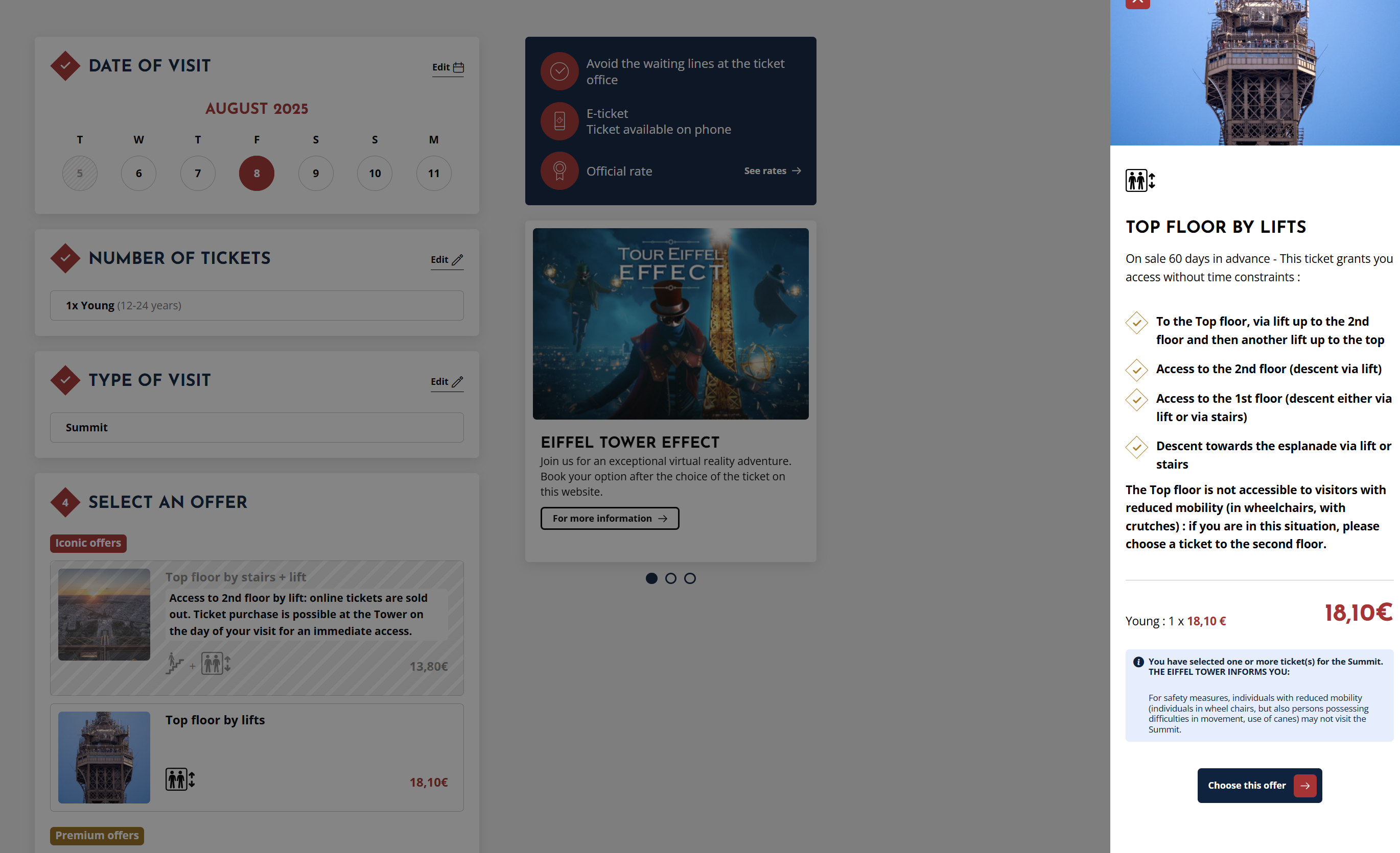에펠탑을 그저 구경하는게 아닌, 에펠탑 내부를 올라가기 위해서는 구매를 해야 되는데요, 에펠탑의 경우는 24세까지 유스군요.