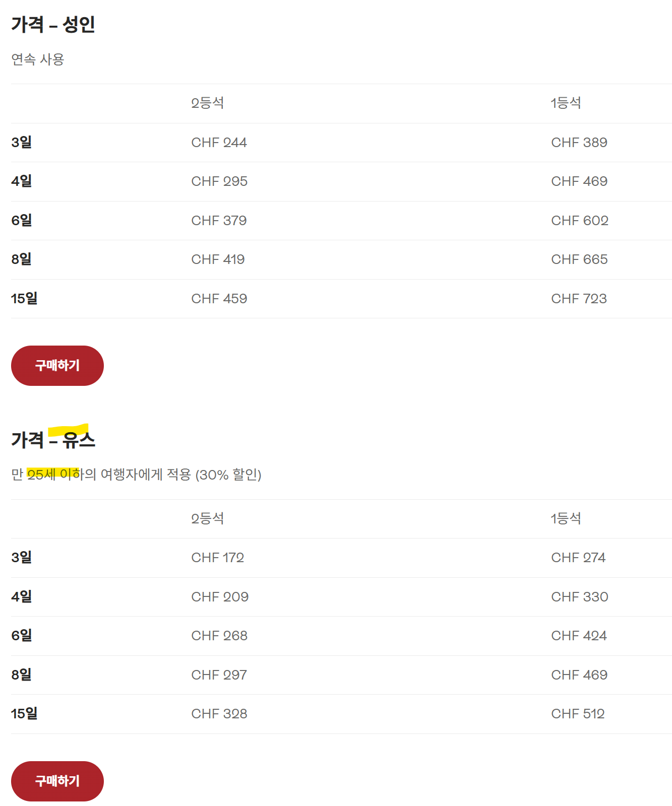 이건 스위스 교통패스 입니다. 만 25세 이하이며, 30% 할인입니다.