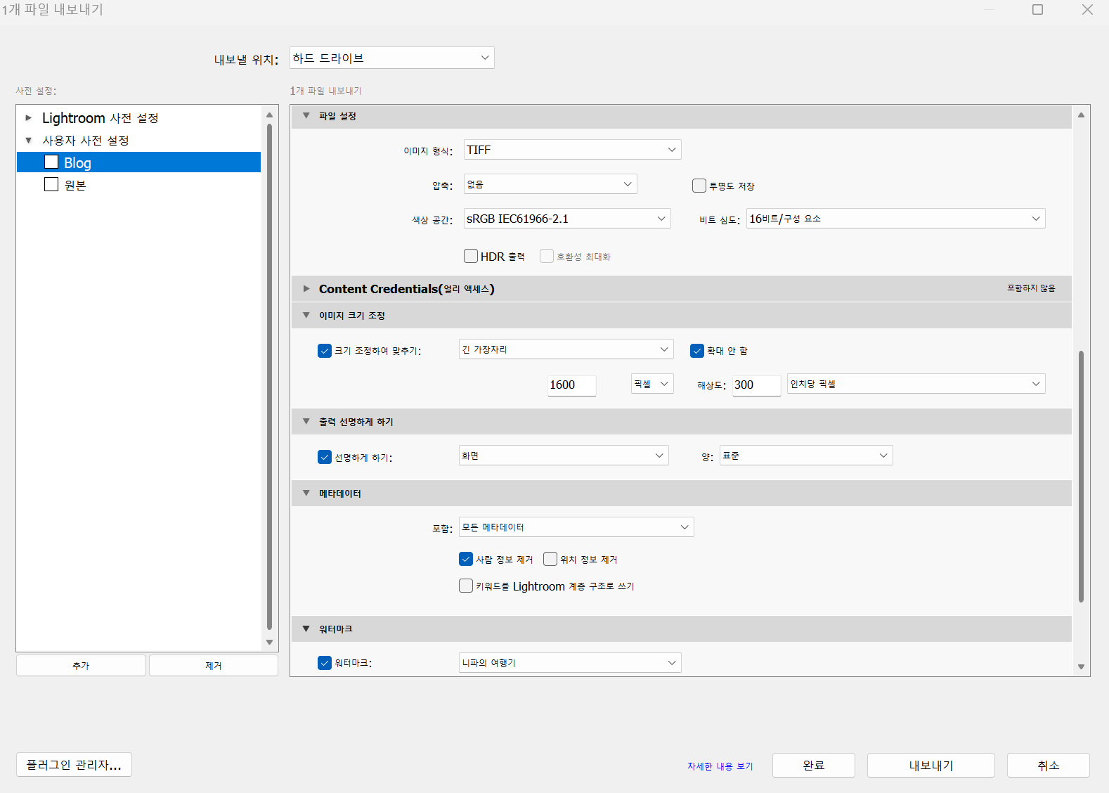 저 같은 경우는 raw 촬영을 보정 후 tiff 파일로 내보낸 뒤, 그걸 다시 webp 로 변환하도록 했습니다.