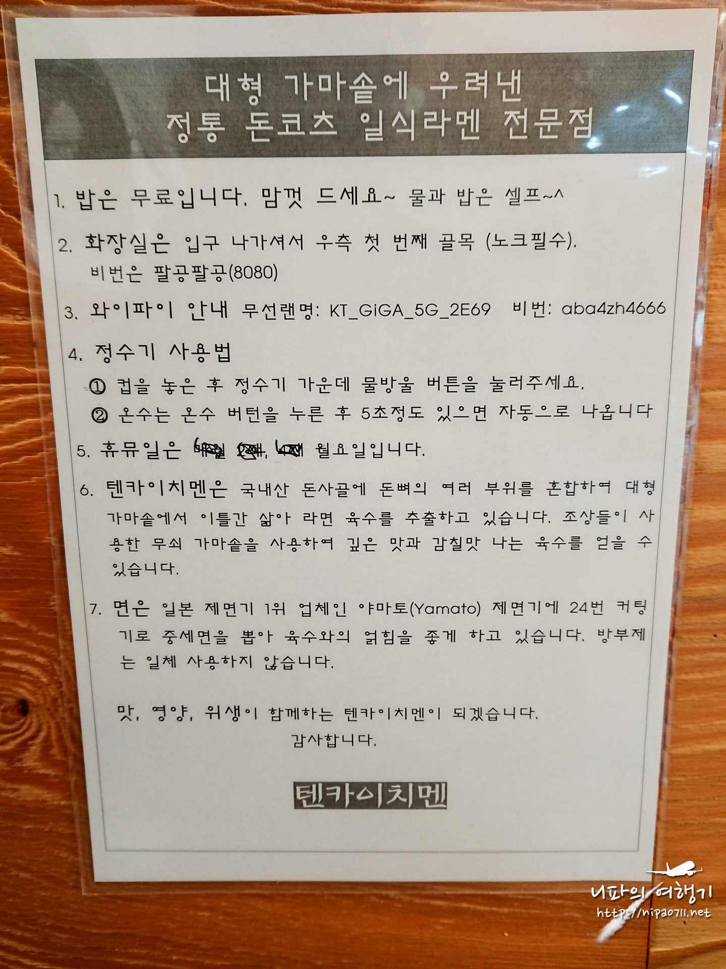 텐카이치멘은 밥은 무료입니다.