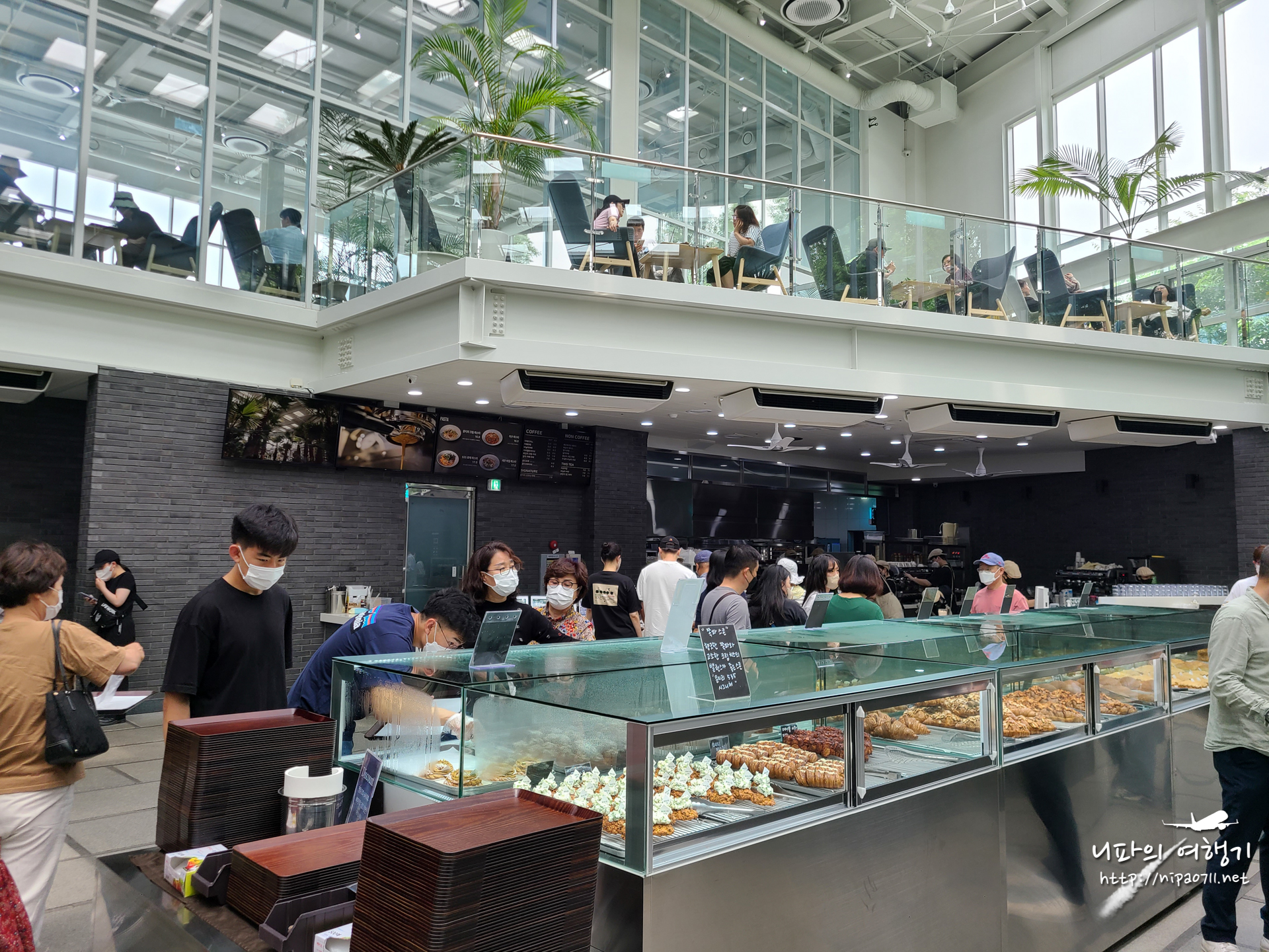 내부에는 다양한 빵들이 있으며, 카페 규모도 상당히 큽니다.