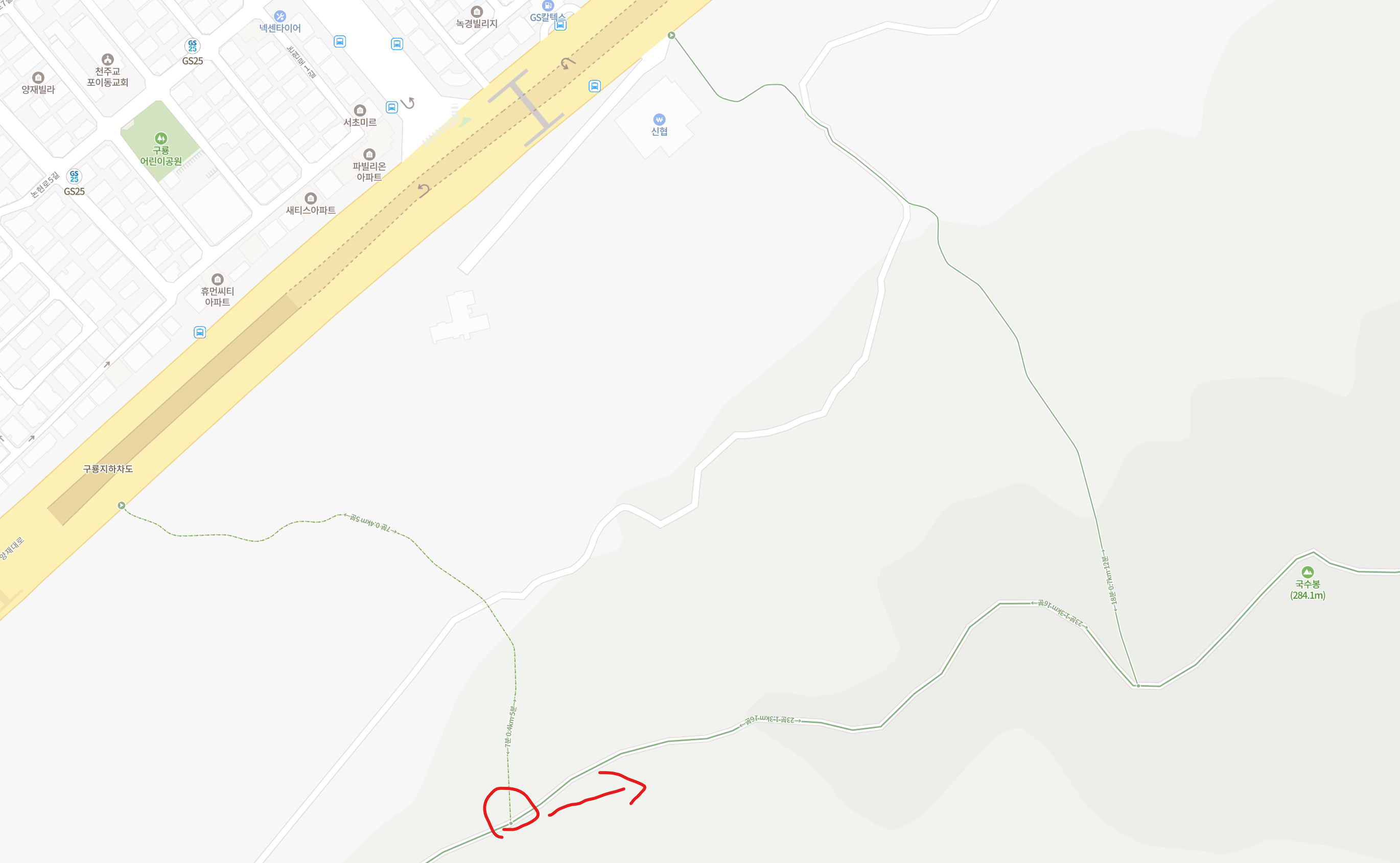 국수봉과 구룡산 정상 자체는 서초구 관할인걸로 보이는데, 제가 간 길의 대부분은 알고보니 강남구 관할이더군요.