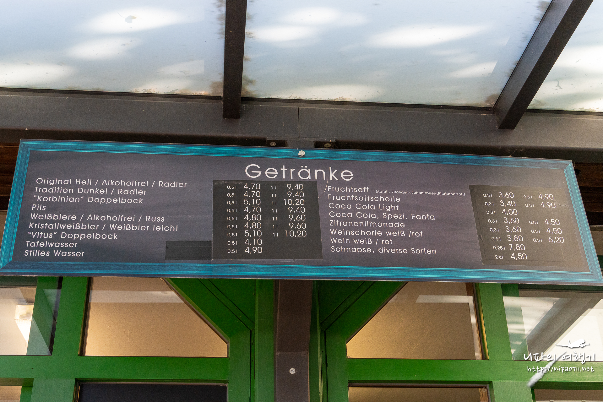 여러 종류를 조금씩 맛보고 싶다면 0.11리터의 작은 잔에 샘플러로 판매하는 ‘비어프로베(Bierprobe)’를 선택할 것. --- 필스너 언필터드는 이곳에서만 판매.