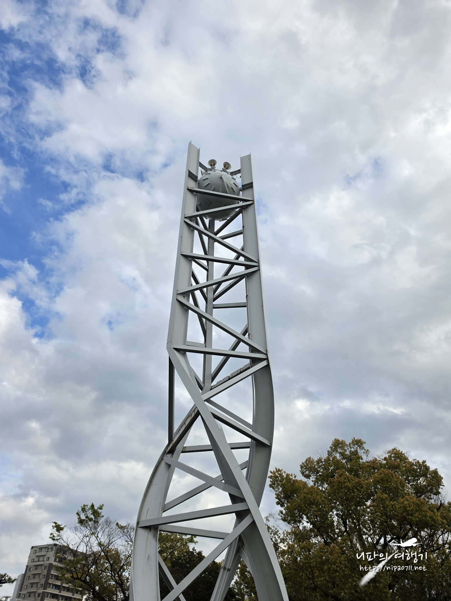 원자폭탄이 투하된 8시 15분을 나타내는 평화의 시계탑입니다.