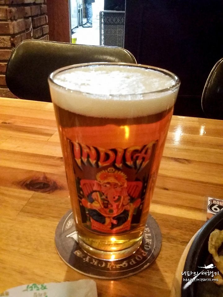 그리고 오랜 고민 끝에 시킨 인디카 IPA 생맥주.
